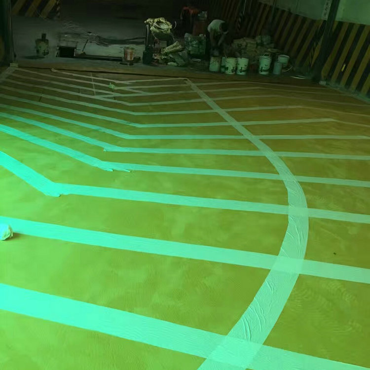 1. 鋪設(shè)底漆:將環(huán)氧樹(shù)脂滲透底漆A組份和B組份按一定比例(1:1)調(diào)配均勻滾涂做底層,封閉原素地表面之毛細(xì)孔,增強(qiáng)素地與漆層的接著力。 2. 刮涂環(huán)氧砂漿中間層:將環(huán)氧樹(shù)脂中涂地坪漆A組份和B組份按一定比例(4:1)調(diào)合攪勻,加入40-80目之石英砂調(diào)成環(huán)氧石英砂漿,刮涂環(huán)氧砂漿中間層。 3. 做止滑層:將A組份和B組份按一定比例(4:1)調(diào)合攪勻,用專(zhuān)用滾筒均勻滾涂一遍,均勻撒布止滑石英砂,待干后掃去多余之石英砂。 4. 彩色面漆滾涂:將A組份和B組份按一定比例(4:1)調(diào)合攪勻,用滾筒或噴涂均勻滾涂一遍。 地面鋪設(shè),減少了制作工序與時(shí)間,并能夠提高產(chǎn)品質(zhì)量,減少施工時(shí)間。